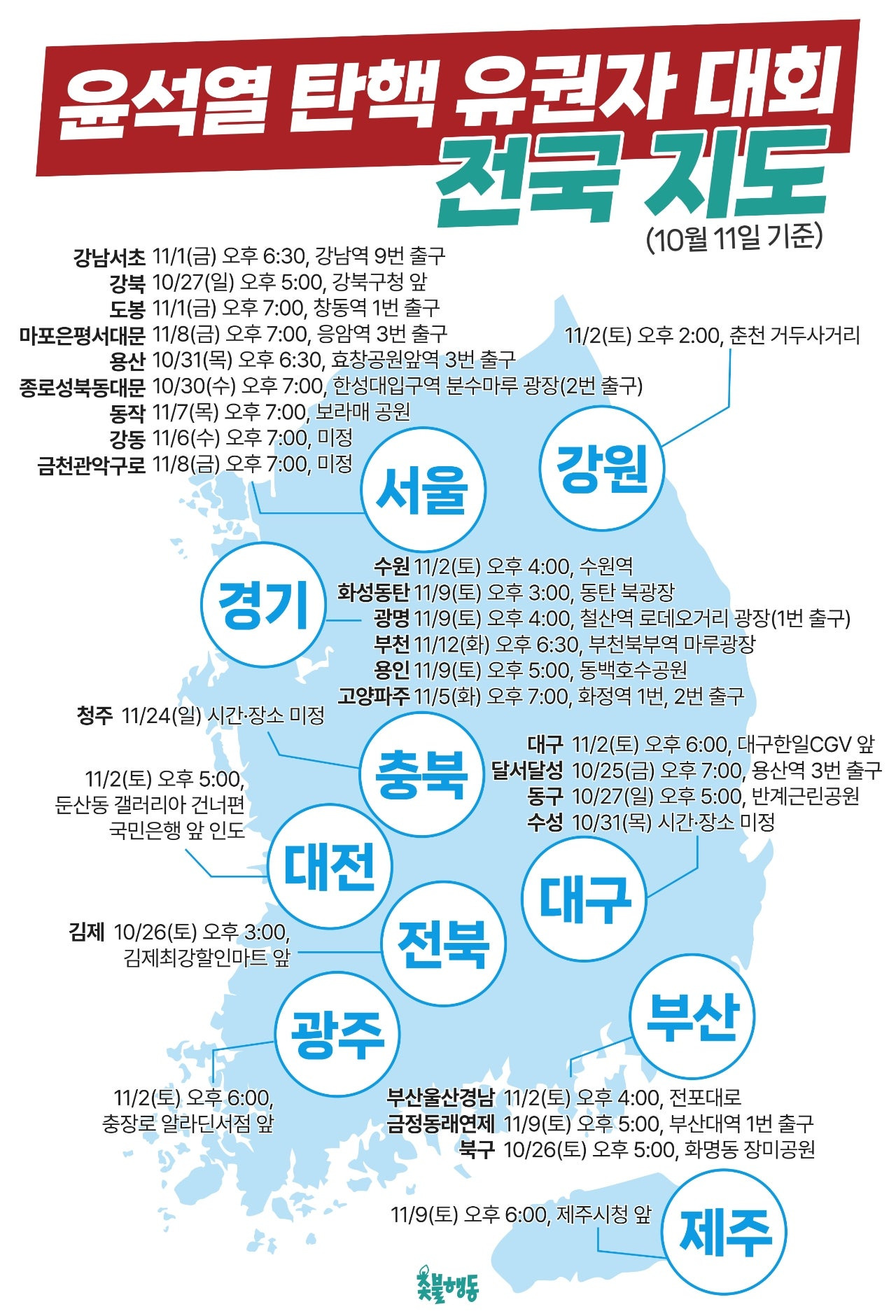 - 청주: 11월 10일(일) 오후 2시, 성안길 올리브영 앞